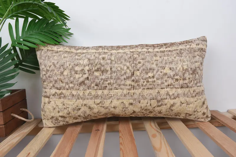 Beiges südwestliches Kelimkissen, 12x24 handgemachtes Kissen mit Reißverschluss