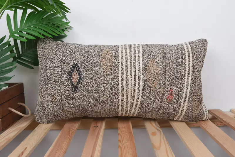 Braunes und beiges Patchwork-Wurfkissen, 12x24 handgefertigtes rechteckiges Kissen