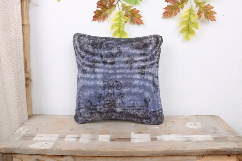 Gesticktes lila und braunes Blumen-Wurfkissen, Vintage-Kissen