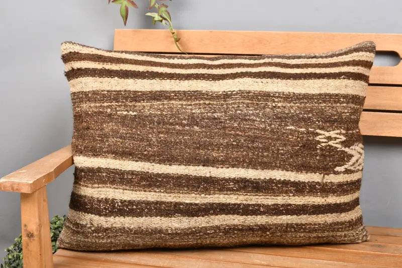 Braun & Beige gestreiftes Kissen, 20x28 besticktes Wurfkissen