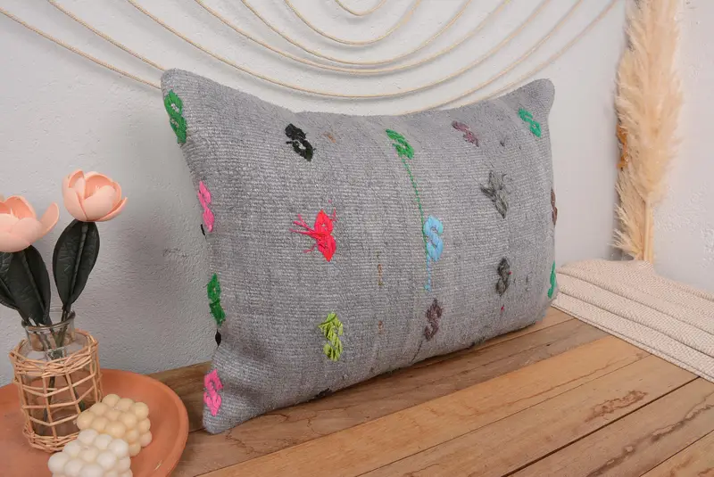 Graues und bronzefarbenes Southwestern-Wurfkissen, 20 x 28 handgefertigtes Kissen