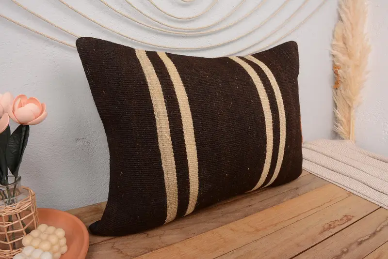 Handgefertigtes braun-beige gestreiftes Kissen, 20x28 besticktes Kissen