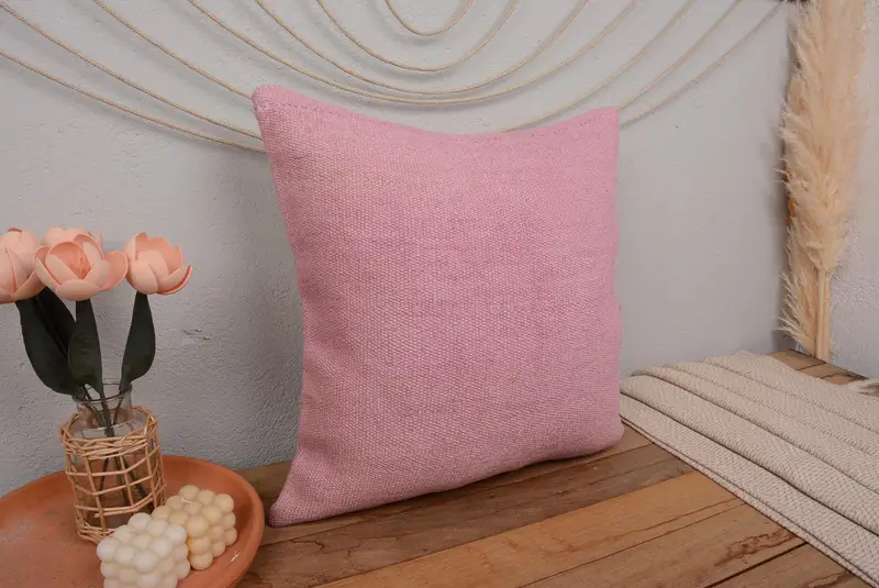 Besticktes Southwestern Pink Wurfkissen, 20x20 handgemachtes Leinenkissen