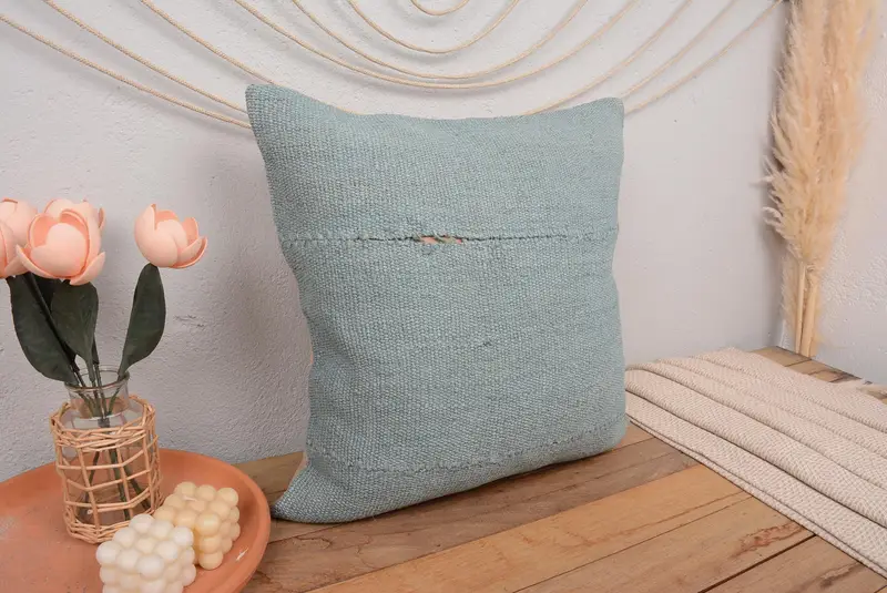 Handgefertigtes südwestliches grünes Kelimkissen, 20x20 Vintage besticktes Wurfkissen