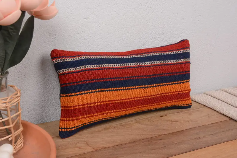 Orange & Bronze gestreiftes Wurfkissen, besticktes rechteckiges Kissen