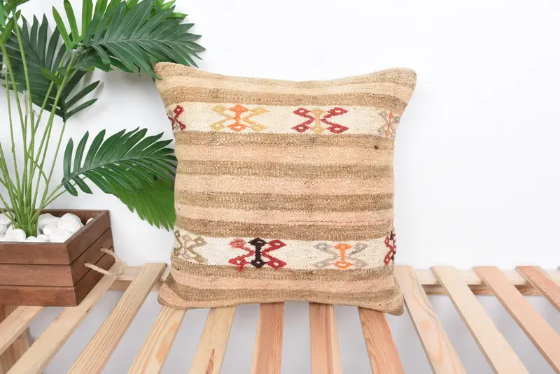 Braun & Beige besticktes Kissen, 18x18 Vintage Wurfkissen