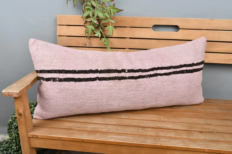 Handgefertigtes besticktes Kissen, Vintage gestreiftes Wurfkissen