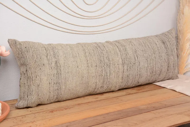 Beige & grau gestreiftes Kissen, besticktes Wurfkissen
