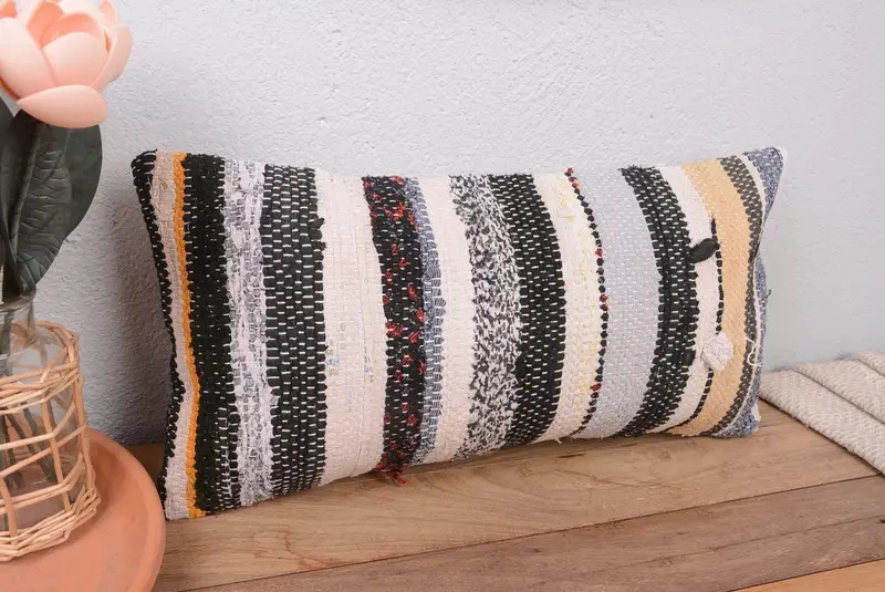 Handgefertigtes 10x20 besticktes Wurfkissen, Vintage gestreiftes Kissen