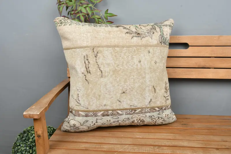 Beige-braunes Patchwork-Wurfkissen, 24x24 besticktes Kissen