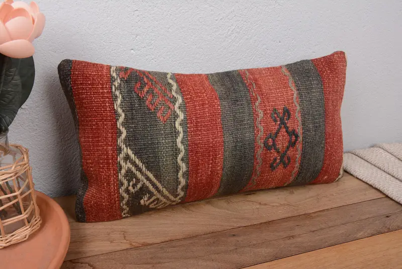 Rot-braun gestreiftes Wurfkissen, 10x20 handgefertigtes besticktes Kissen