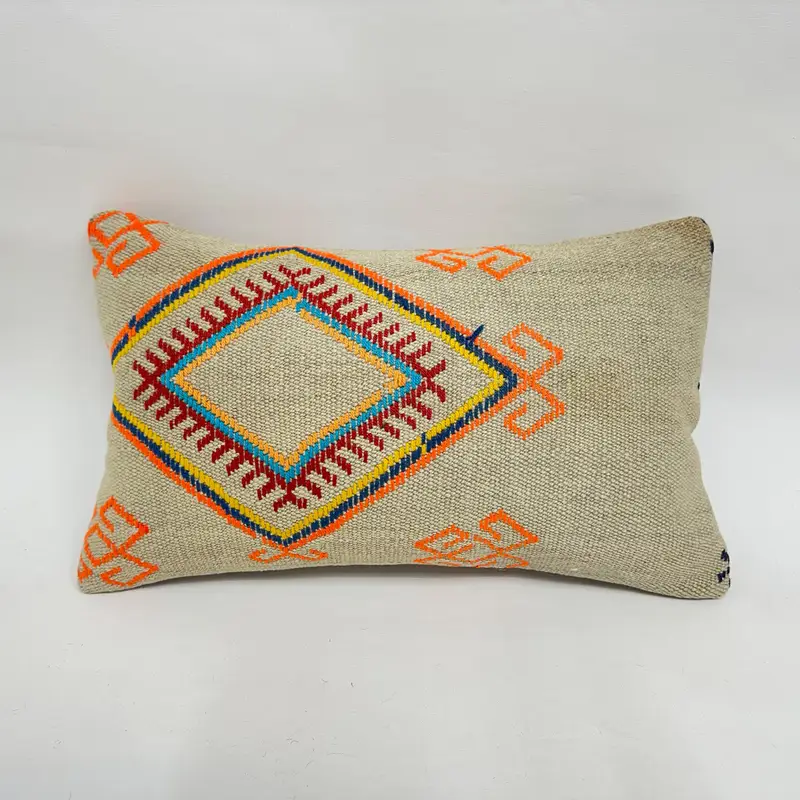 Beige & Orange besticktes Wurfkissen, handgemachtes geometrisches Kissen