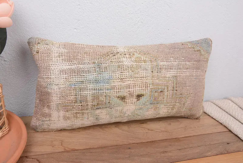 Beige besticktes Kissen im Südwesten, handgefertigtes rechteckiges Wurfkissen