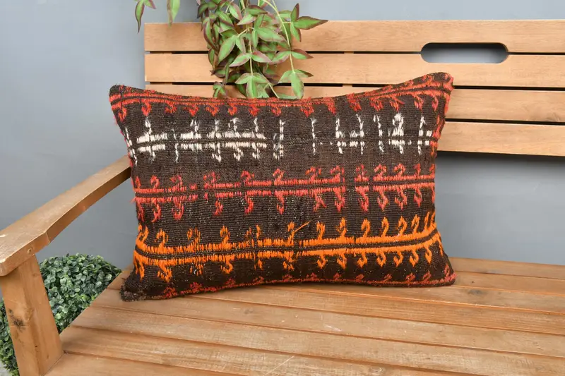 Geometrisches Kissen in Braun und Orange, handgefertigtes Leinenkissen