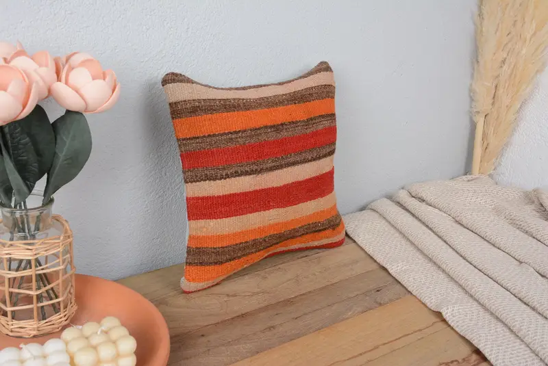 Rot & Orange gestreiftes Wurfkissen, 12x12 besticktes Kissen