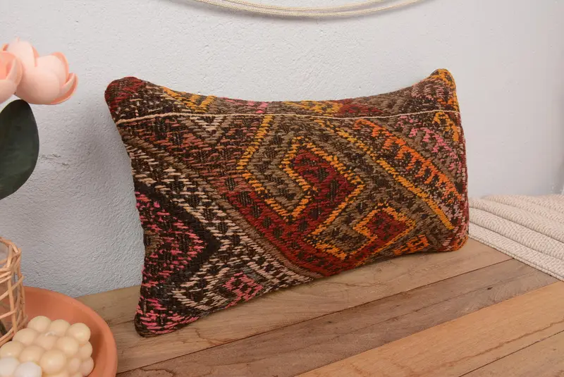 Rot & Orange besticktes Wurfkissen, 12x24 handgemachtes Kissen