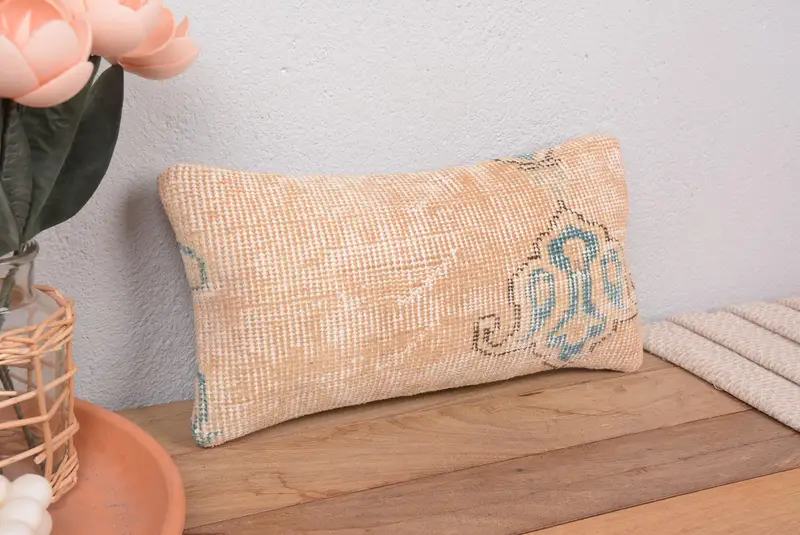 Beigefarbenes Southwestern-Wurfkissen, Vintage besticktes rechteckiges Kissen