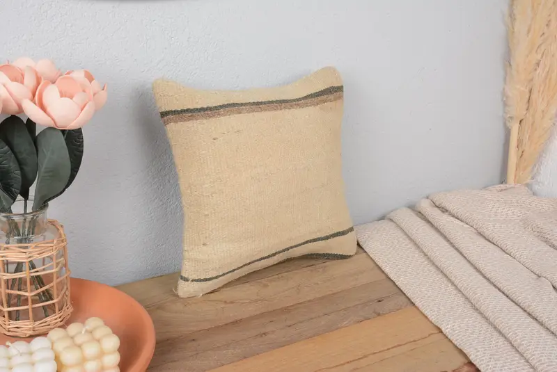 Beige und braun gestreiftes Kissen, 12x12 besticktes Wurfkissen