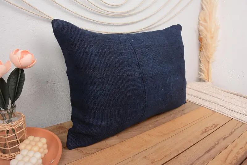 Blaues Southwestern besticktes Wurfkissen, Vintage handgemachtes Kissen