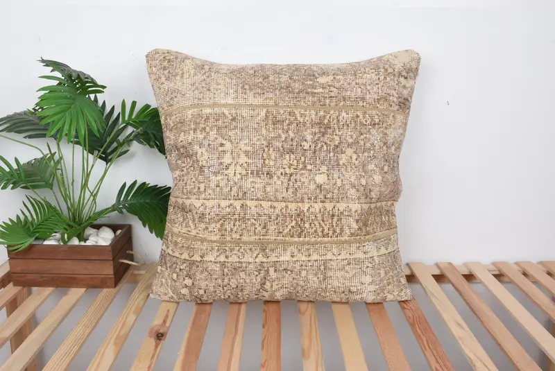 Beige & braunes Patchwork-Wurfkissen, handgefertigtes besticktes Kissen