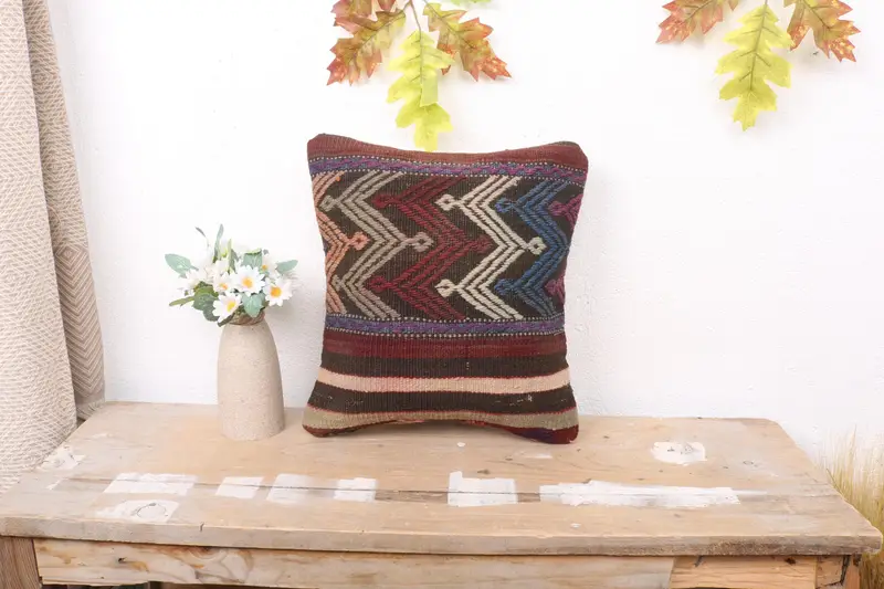 Geometrisches Kissen in Lila und Bronze, Vintage-gesticktes Kissen