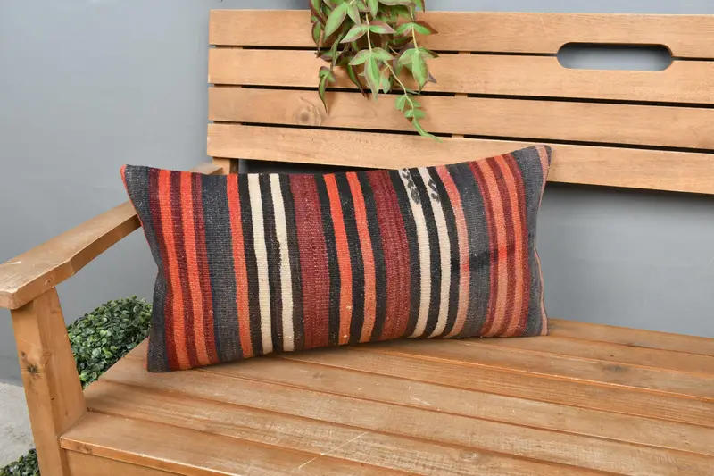 Rot-grau gestreiftes Kissen, handgefertigtes besticktes Kissen