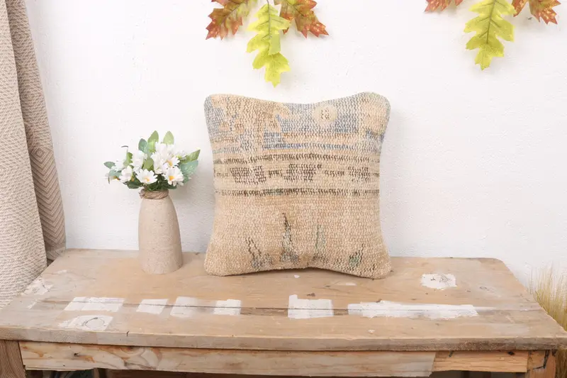 Orange & Grün besticktes Wurfkissen, Vintage geometrisches Kissen