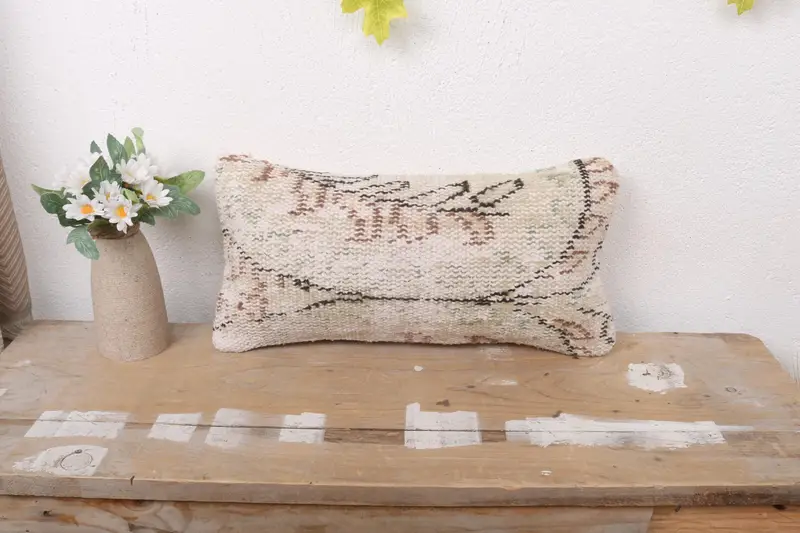 Besticktes Beige & Braunes Blumenkissen, handgefertigtes Vintage-Kissen