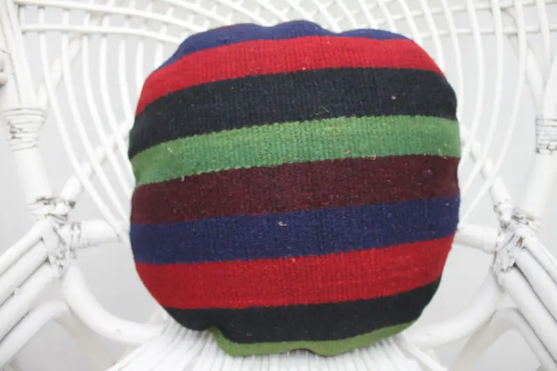 Gesticktes rosa gestreiftes Kissen, handgemachtes Vintage-Wurfkissen
