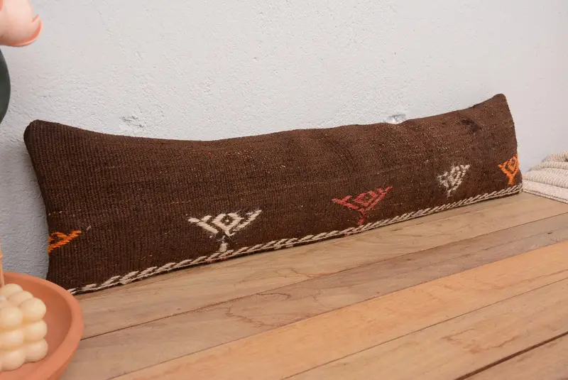 Handgefertigtes besticktes Braun- und Beige-Wurfkissen, Vintage-Rechteckkissen