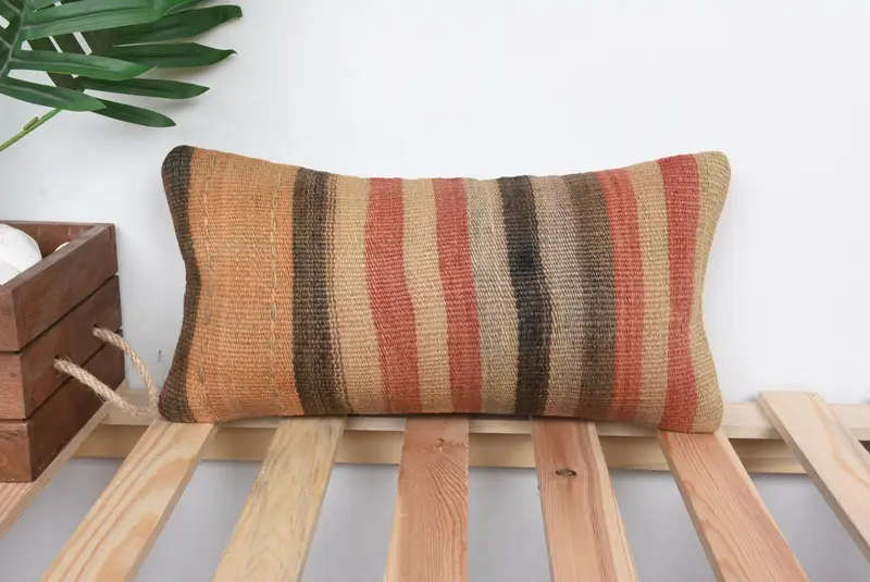 Handgefertigtes besticktes Kissen, 8x16 Vintage Streifenkissen