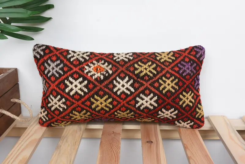 Rot-weiß besticktes Kissen, 8x16 handgemachtes Wurfkissen