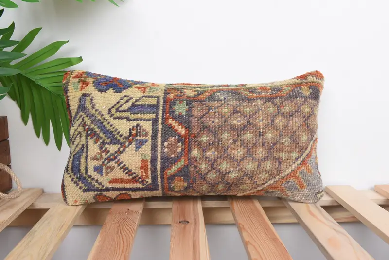 Blaues und braunes Southwestern-Wurfkissen, Vintage-gesticktes Kissen