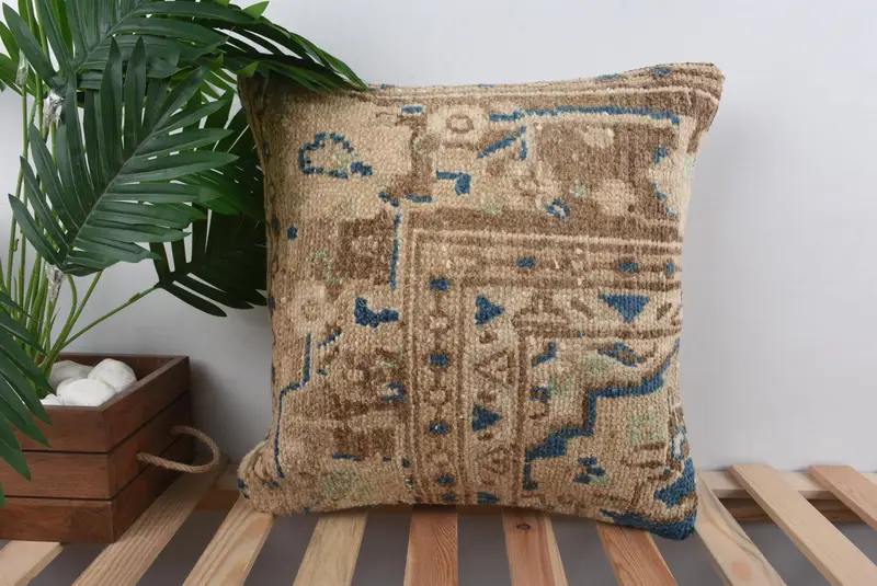 Blaues südwestliches besticktes Wurfkissen, handgefertigtes Vintage-Kissen