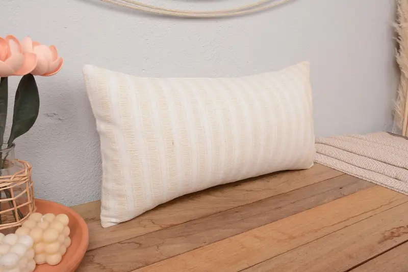 Handgefertigtes Beige & Braun gestreiftes Kissen, 12x24 besticktes Wurfkissen