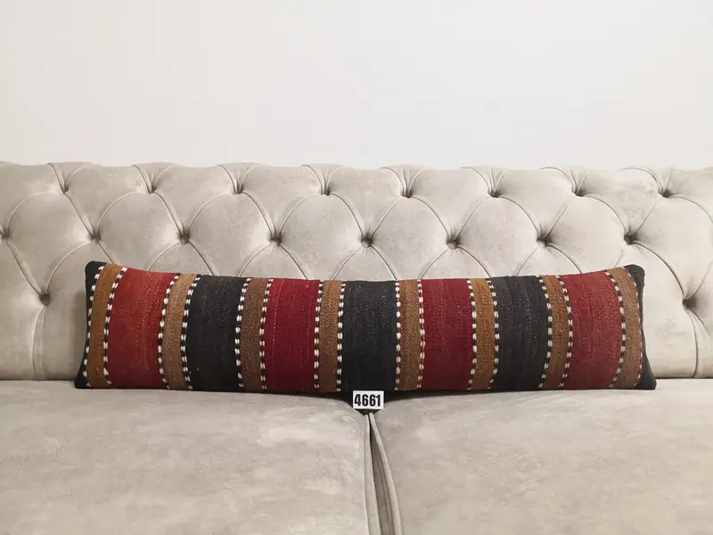 Rot & Braun gestreiftes Wollkissen, 8x36 handgemachtes Kissen