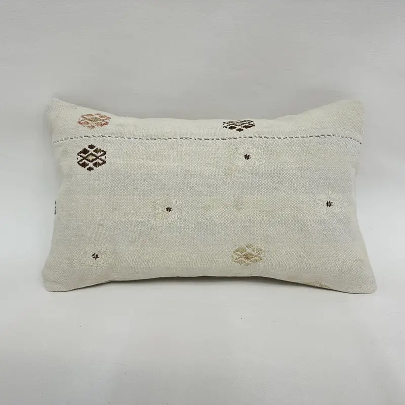 Handgefertigtes Kelimkissen mit gesticktem Südwestmuster, rechteckiges Wurfkissen