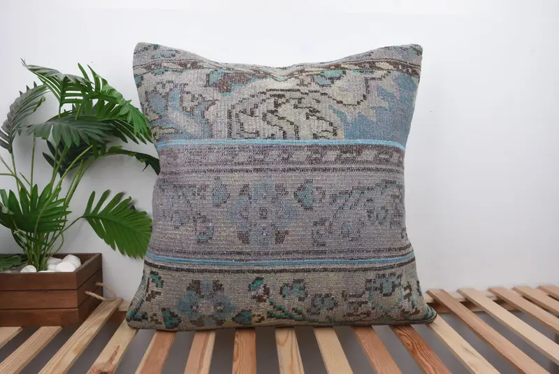 Beige & grünes Patchwork-Wurfkissen, Vintage besticktes Kissen