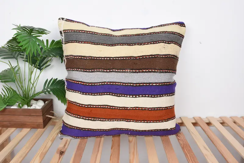 Lila und Beige gestreiftes Wurfkissen, 28x28 besticktes Kissen