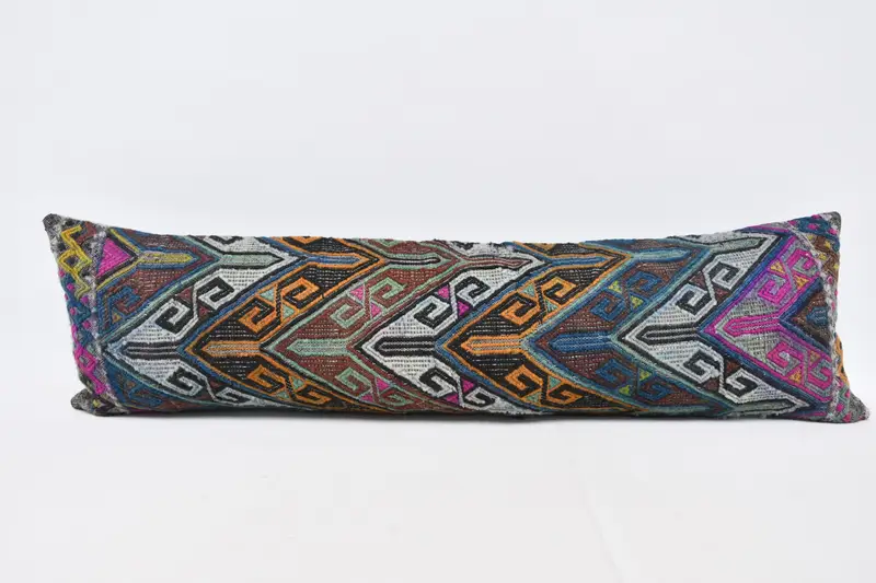 Blau-rot gepunktetes Bolster-Wurfkissen, Vintage-gesticktes Kissen