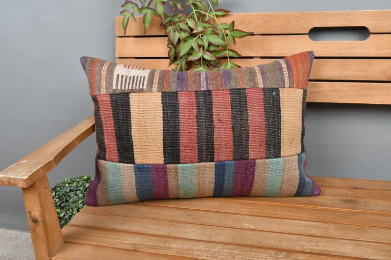 Rot & Bronze gestreiftes Kissen, handgemachtes Vintage Rechteckkissen