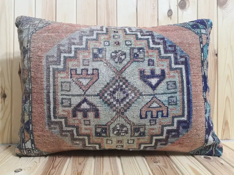 Handgefertigtes geometrisches Wollkissen in Rot und Bronze, rechteckiges Vintage-Kissen
