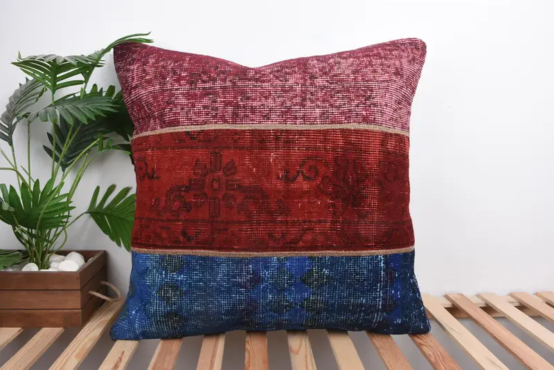 Besticktes Patchwork-Kissen in Rot und Bronze, handgefertigtes Vintage-Kissen