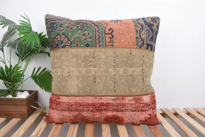 Rot-grünes Patchwork-Wurfkissen, 28x28 besticktes Vintage-Kissen