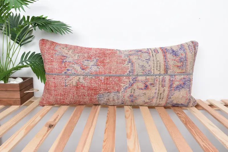 Rot-lila Patchwork-Wurfkissen, besticktes Vintage-Kissen