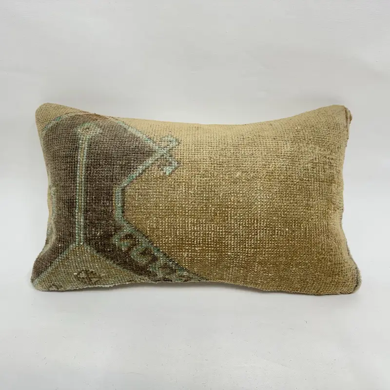 Braun besticktes Blumenkissen, 12x20 handgemachtes Rechteckkissen