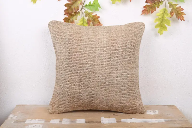 Beigefarbenes, besticktes Kissen im Südwesten, Vintage-Kissen mit Reißverschluss
