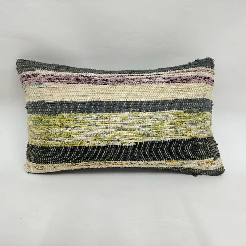 Handgefertigtes grün-beige gestreiftes Kissen, Vintage Rechteckkissen