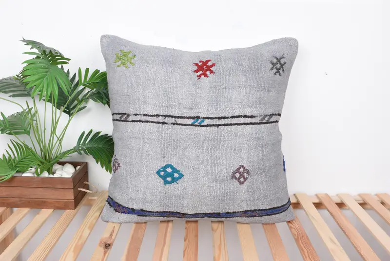 Grau & Bronze gestreiftes Wurfkissen, 28x28 besticktes Kissen