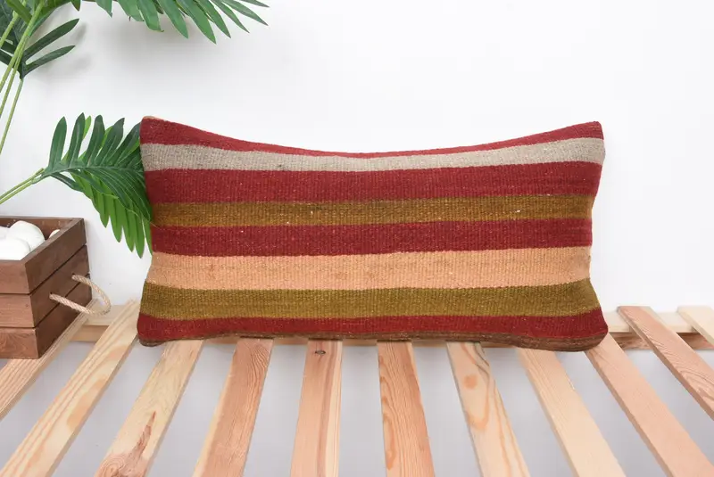 Braun-rot gestreiftes Kissen, besticktes Vintage-Wurfkissen